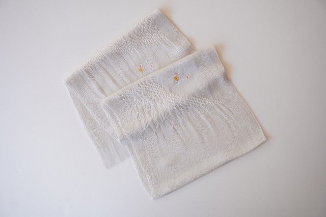 ● 帯揚げ (No.1) ちりめんの生地に絞りと花輪の刺繍が 施された帯揚げです。 淡い白花色(くすんだ青みのある灰色)が 凛とした印象を与えます。 ・素材 : 正絹 ・長さ : 159.8〜160cm ・巾 : 26.1〜26.2cm ・特徴 : ちりめん、絞り ・用途 : カジュアル フォーマル 【コーディネートして頂けるお着物】 ・小紋 ・色無地 ・付下げ 【その他】 ・絞りが施されているため、特性上、 生地の端が波打っている箇所がございます。 ・お手入れはドライクリーニング(セキユ系)が可能です。 ・細心の注意を払い、実物に近い色味で撮影していますが、 お使いのスマートフォンやモニターによって、 若干、色味の違いがございますことご了承ください。 ・お客様都合による、返品交換はいたしかねます。 ・ご不明点がある場合は、ご購入前にお問合せください。 ・お手持ちの着物との相性など、お気軽にご相談下さい。