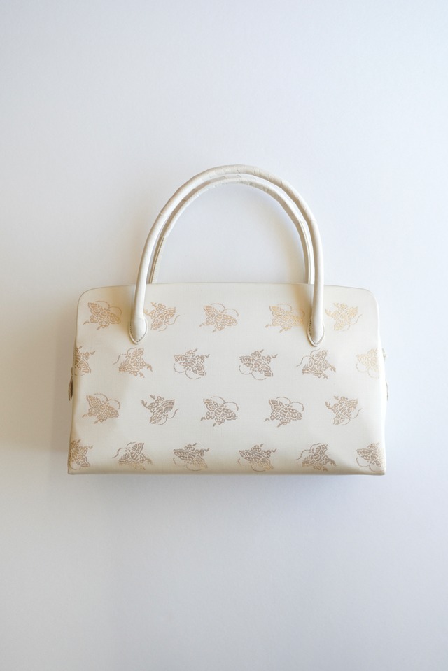 ● 和装バッグバッグ (No.2) アイボリーの糸と本金の糸を使用して手織りで制作した 蝶の柄が華やかな本歌名物裂の和装バッグです。 ・素材 : 正絹 ・横 : 29cm ・縦 : 17.2cm(取手含むと28cm) ・マチ : 11cm ・用途 : 茶道 お茶会 お茶のお稽古 様々なフォーマルシーン 【コーディネートして頂けるお着物】 【その他】 ・手作業で製作しているため、生地の柄の出方が 写真と異なる場合がございます。 ・細心の注意を払い、実物に近い色味で撮影していますが、 お使いのスマートフォンやモニターによって、 若干、色味の違いがございますことご了承ください。 ・お客様都合による、返品交換はいたしかねます。 ・ご不明点がある場合は、ご購入前にお問合せください。 ・お手持ちの着物との相性など、お気軽にご相談下さい。