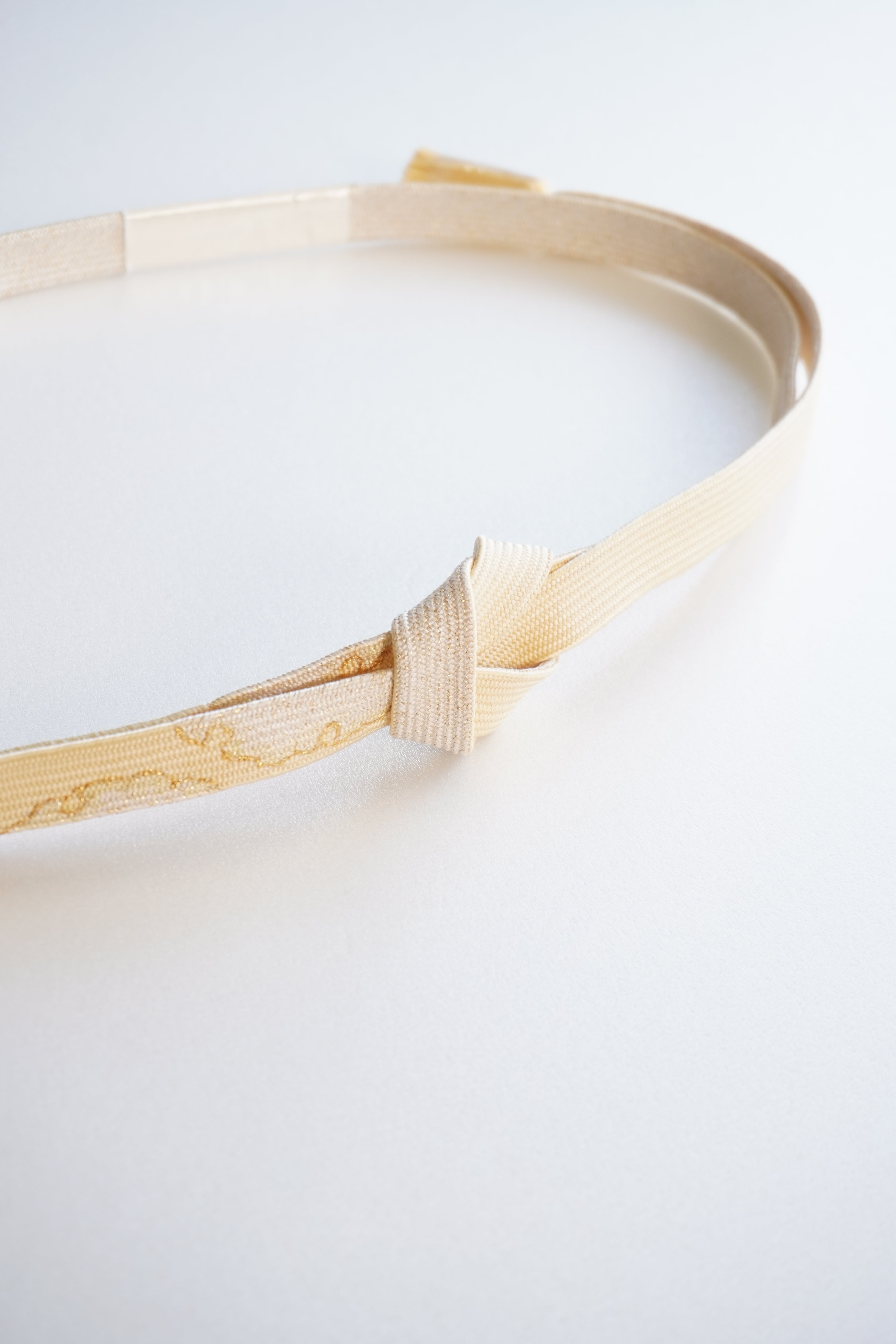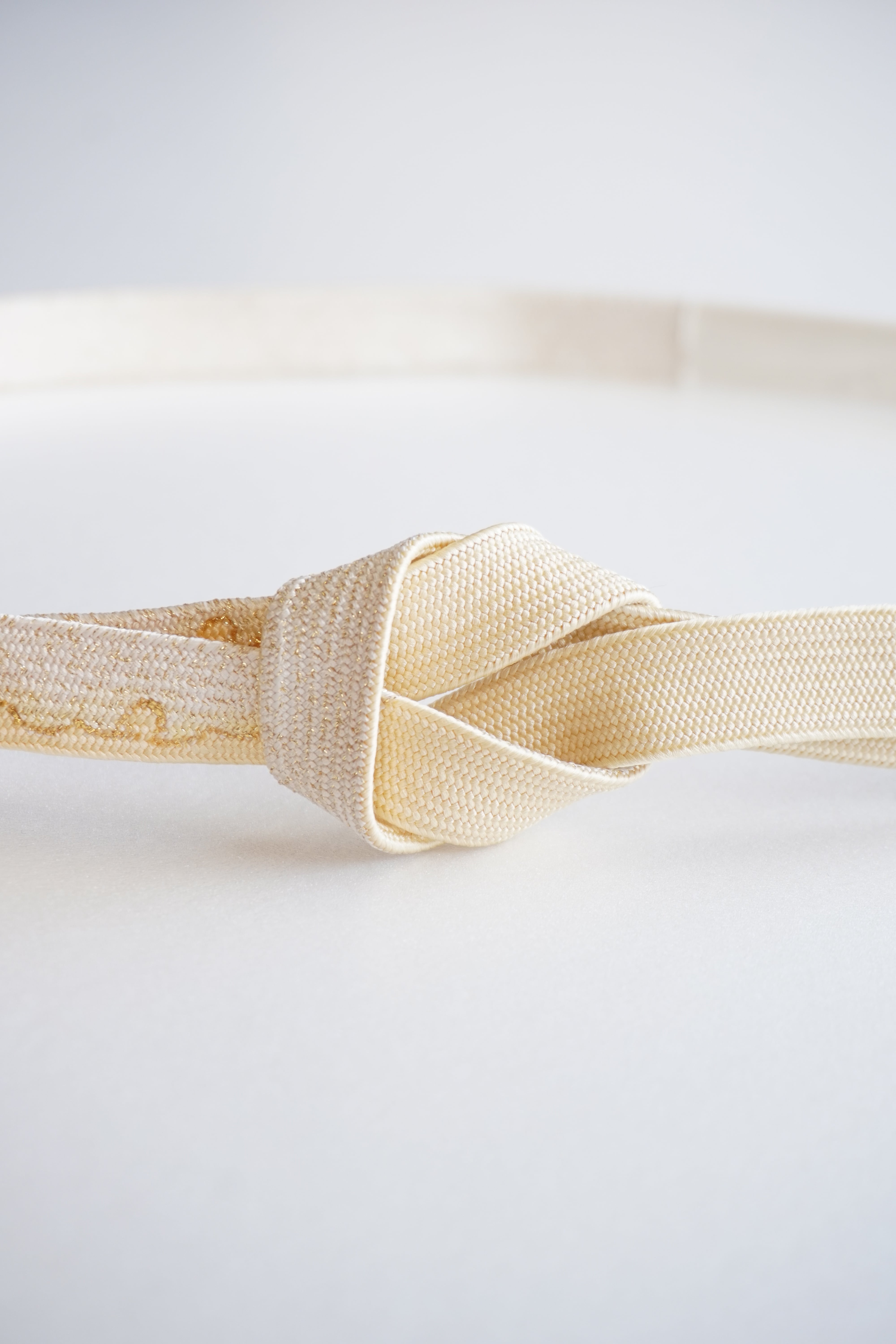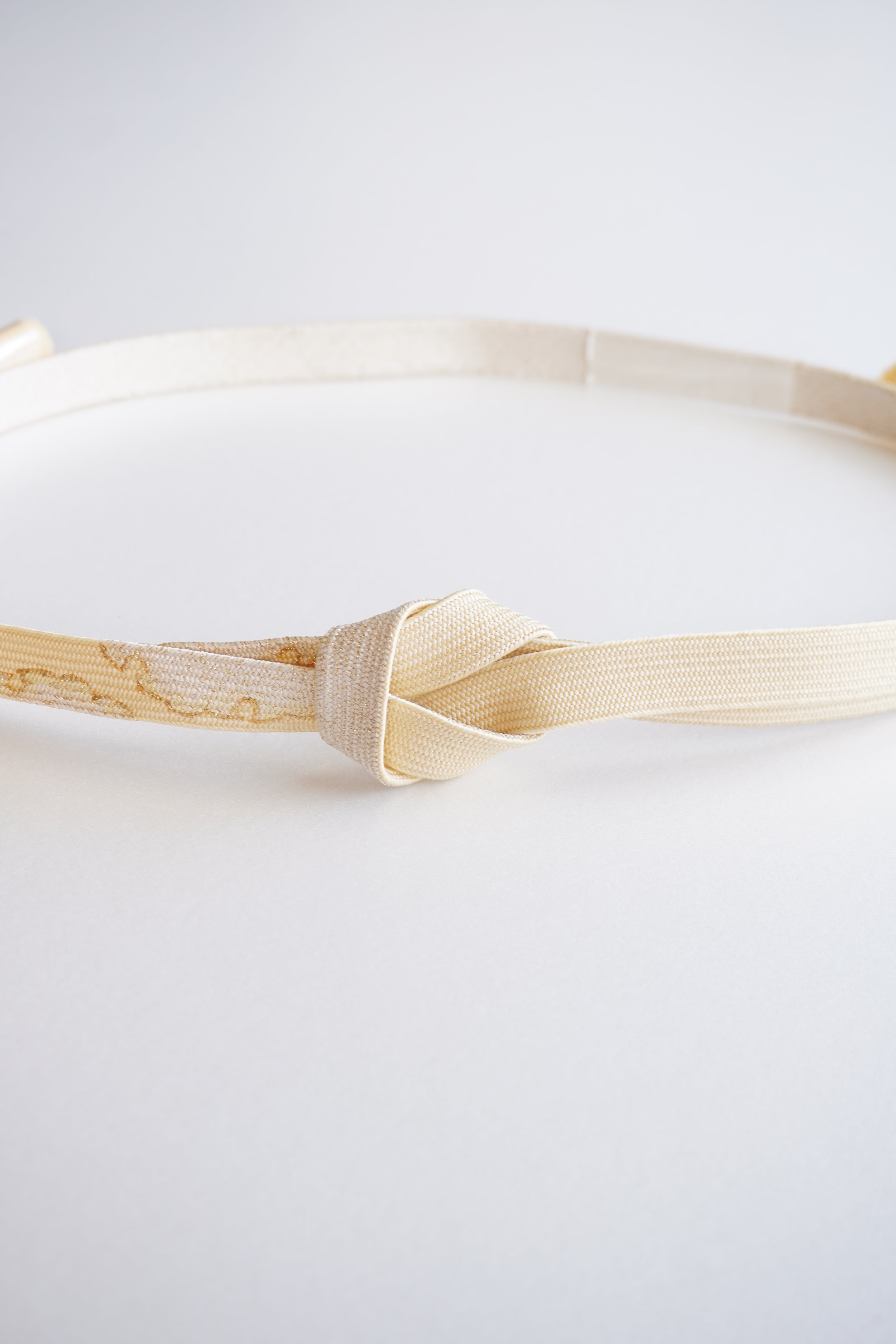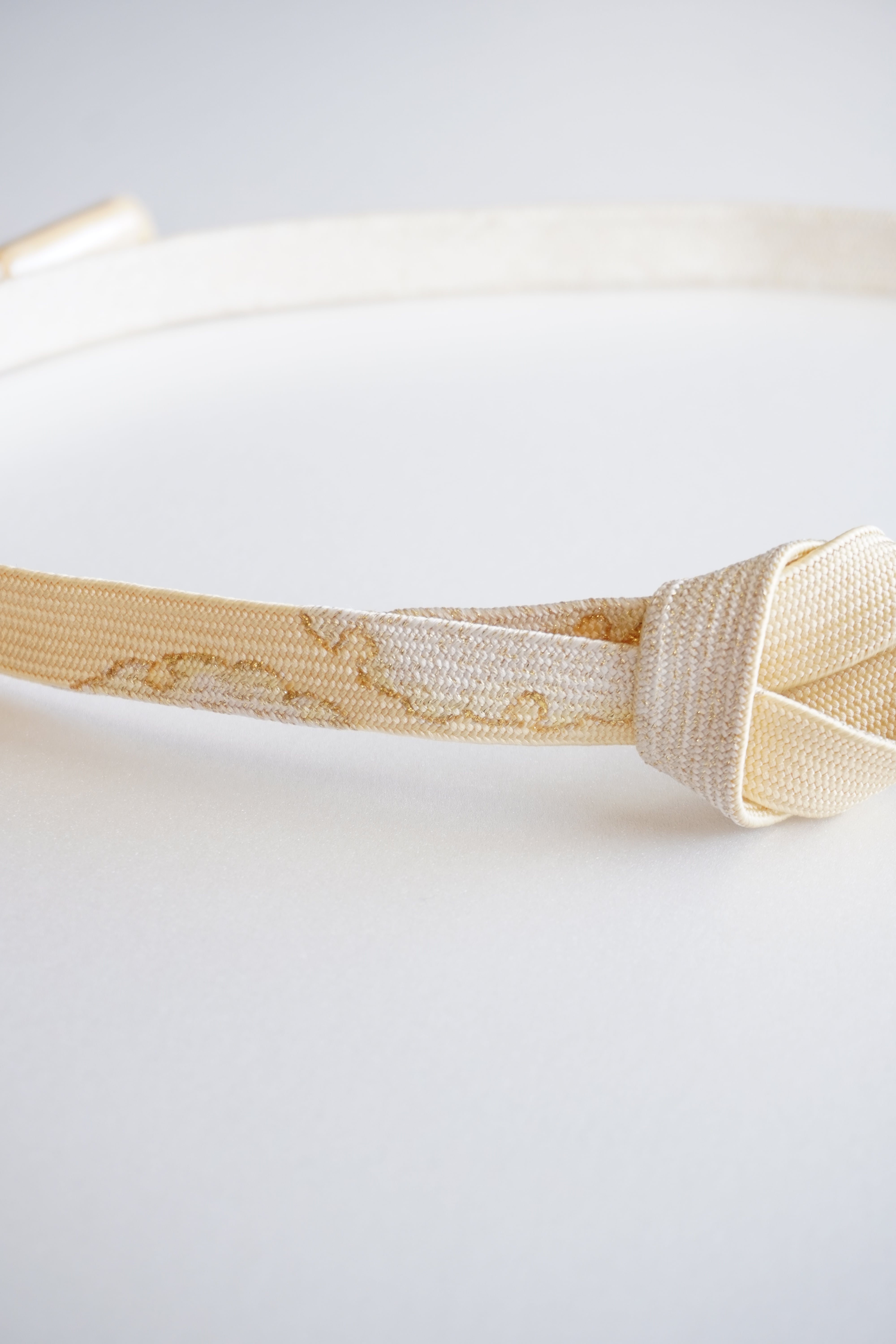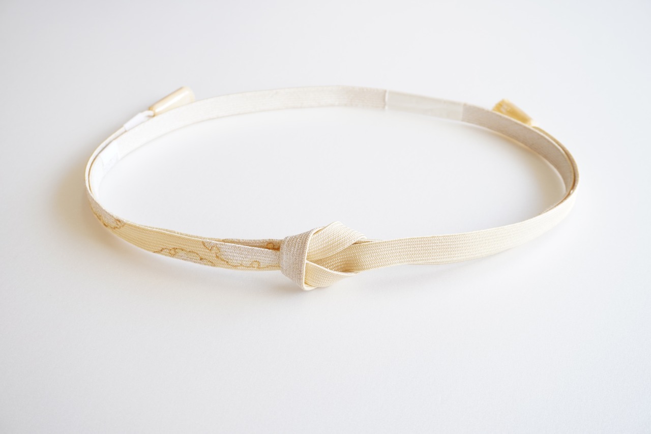 蜂蜜色に雪輪の文様が施された帯締めです。