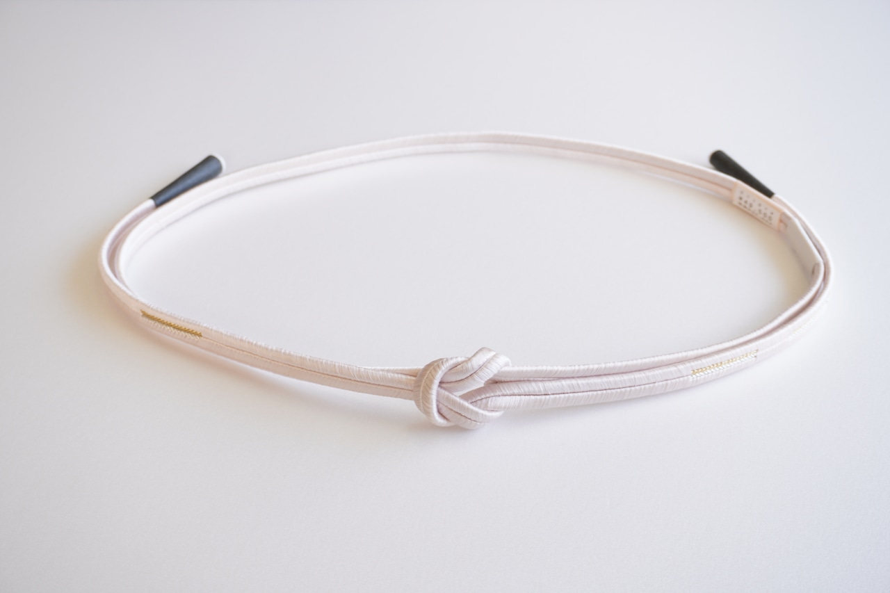 光沢のある桜鼠色の帯締めです。