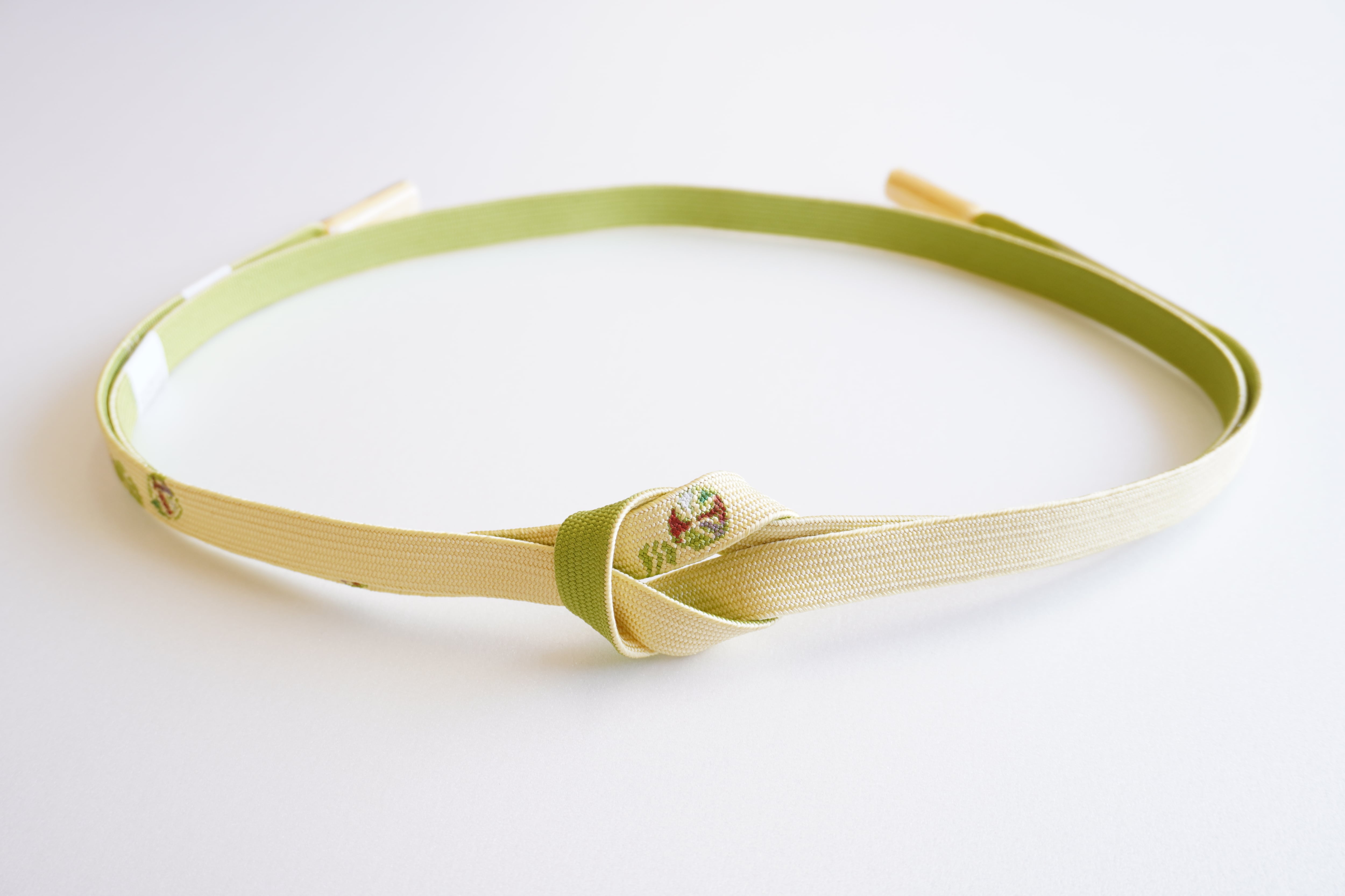 淡黄色の地に鞠の柄が可愛らしい帯締めです。