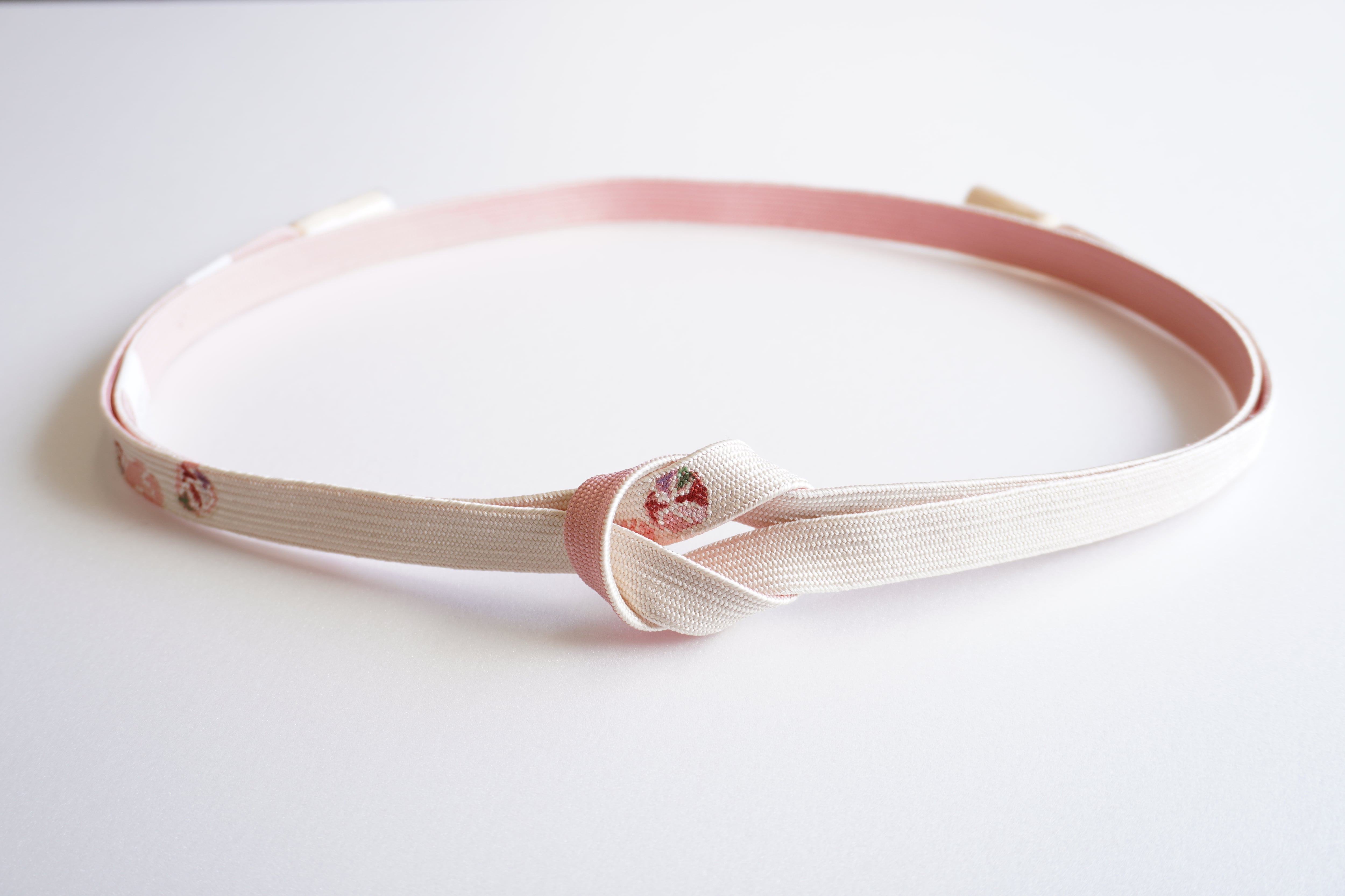 アイボリーの地に鞠の柄が可愛らしい帯締めです。