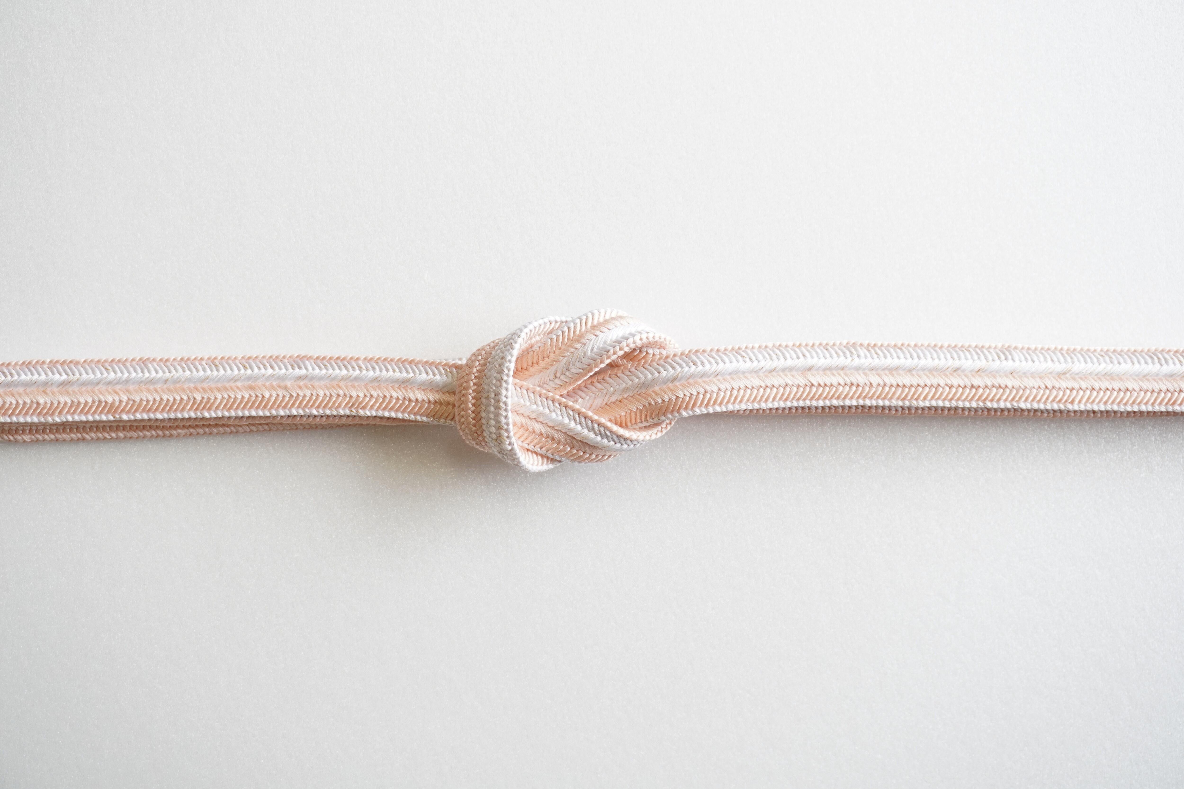 光沢のある白と赤香色の帯締めです。