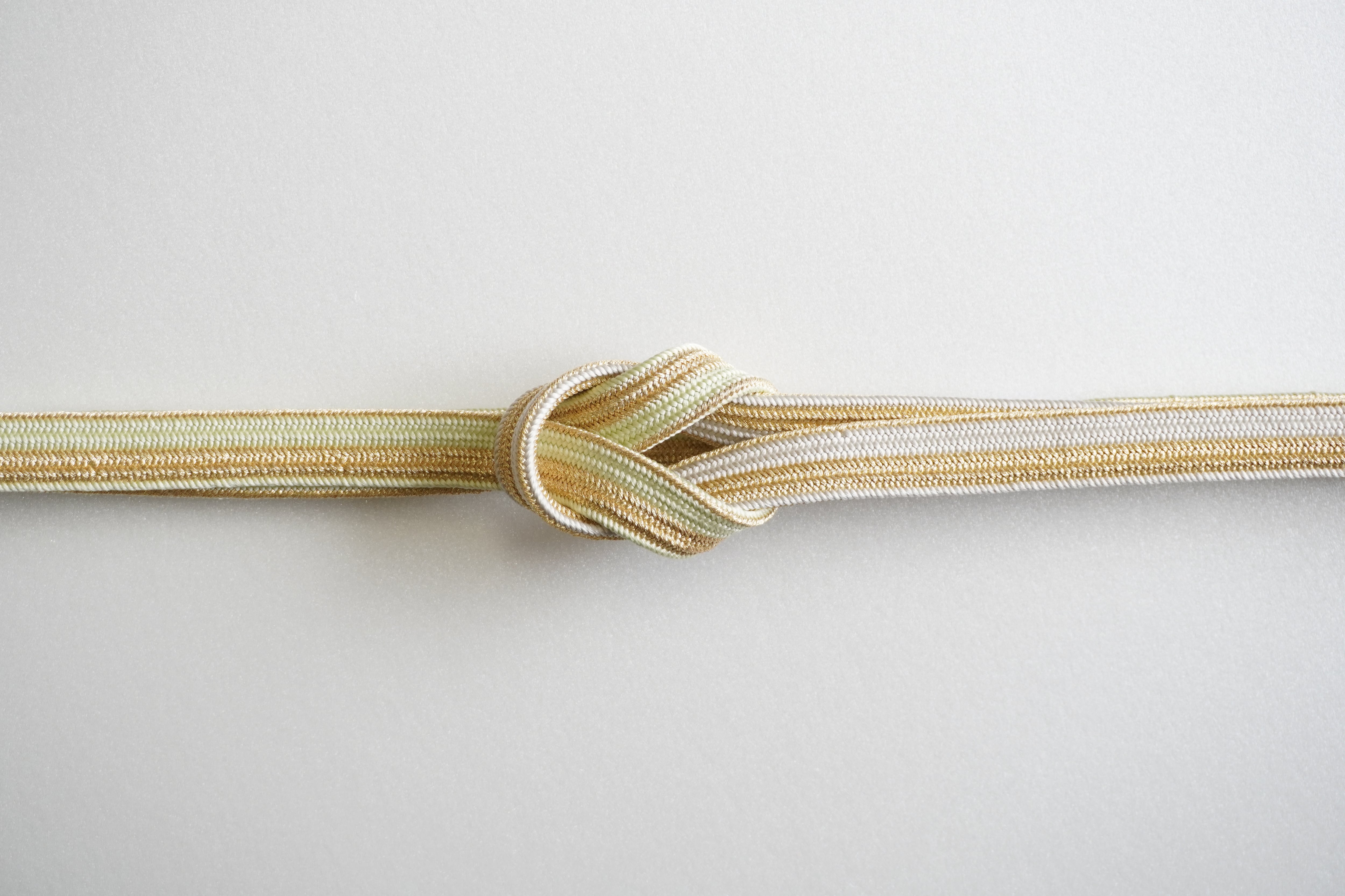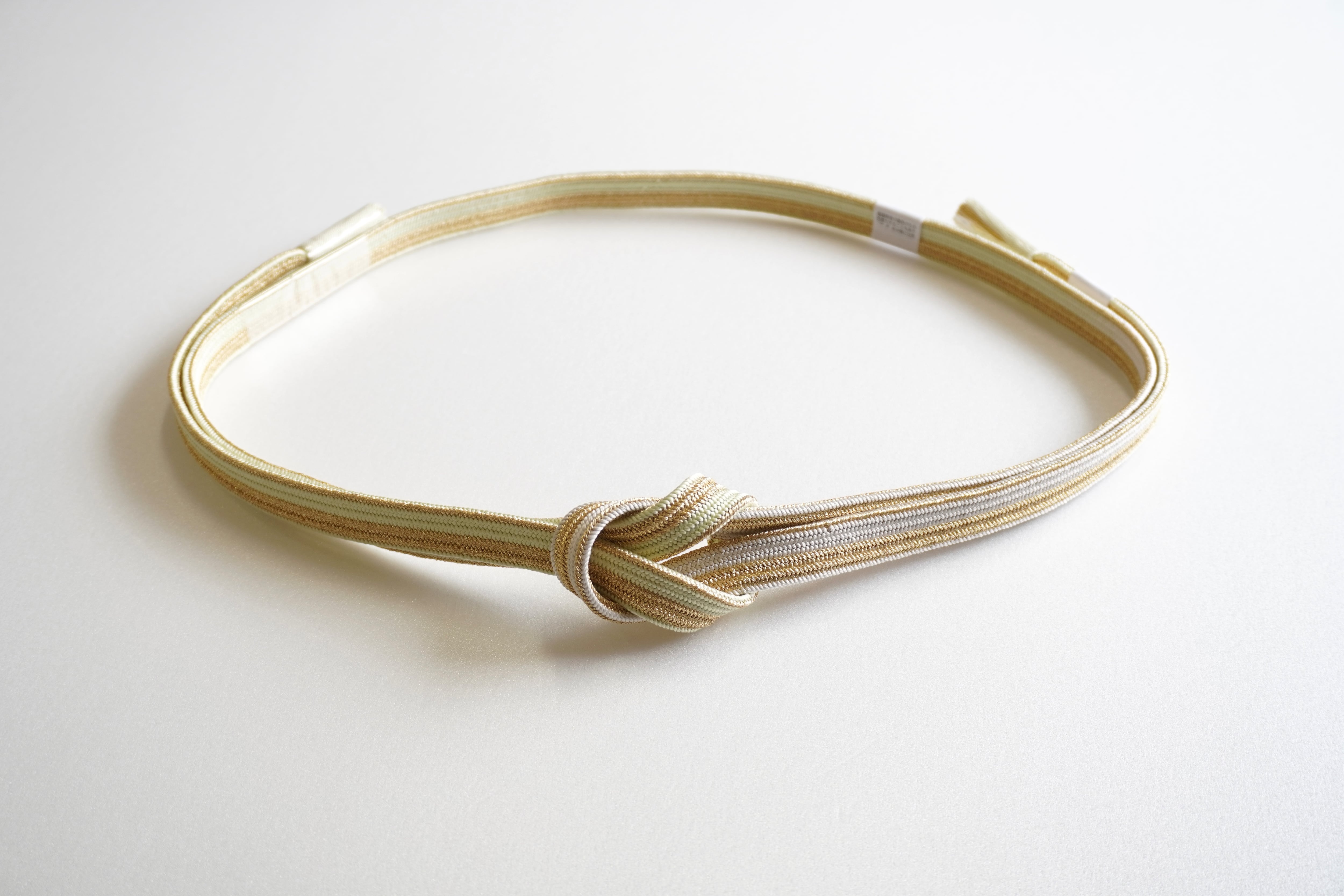若葉色から灰白色のグラデーションが美しい帯締めです。