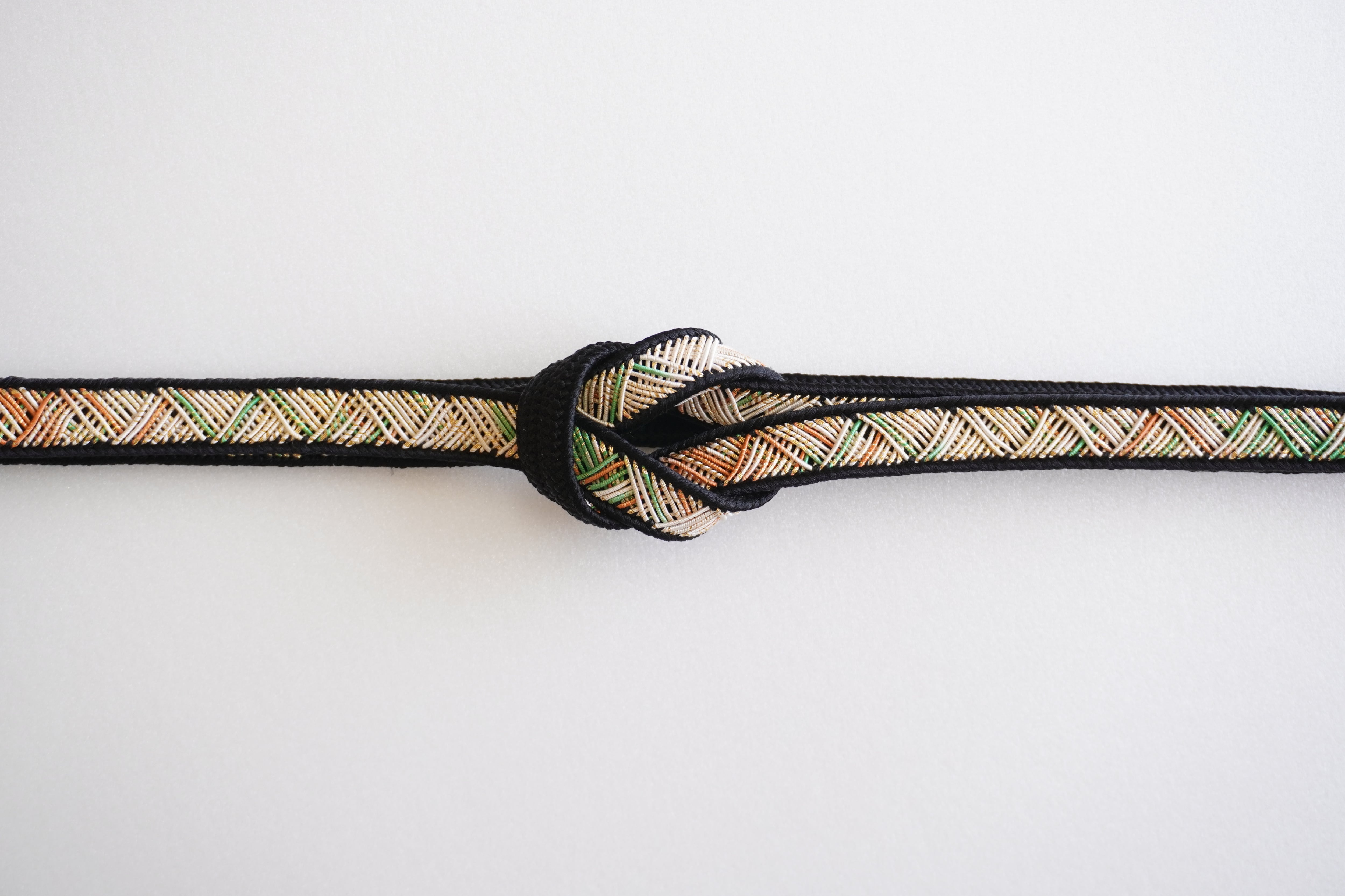 斜めに渡った糸が特徴的な帯締めです。